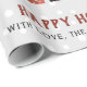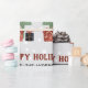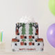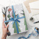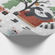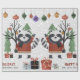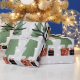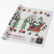 Vintercirkuma och träd Glad helg-Papper för julinsvällning som visar upp en rulle i vinterkläder, träd och prydnadsföremål och gåvor.