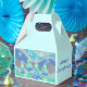 Ett modernt, stiliserat vinterlandskap med frostigt gräs träd och mousserande snöflingor. Favoritruta med grönt, blått, silver grått och vitt anpassade som du kan anpassa med egen text, bilder och egna idéer. Bilden skapades med en digitalt utökad färgpenna teckning.
