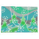 Ett modernt, stiliserat vinterlandskap med frostigt gräs träd och mousserande snöflingor. En handväska med grönt, blått, silver grått och vitt anpassade som du kan anpassa med din egen text, bilder och dina egna idéer. Bilden skapades med en digitalt utökad färgpenna teckning.