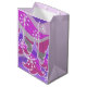 Ett modernt, stiliserat vinterlandskap med frostigt gräs träd och mousserande snöflingor. En handväska med lila, rosa, silver grått och vitt anpassade som du kan anpassa med din egen text, bilder och dina idéer. Bilden skapades med en digitalt utökad färgpenna teckning.
