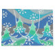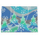 Ett modernt, stiliserat vinterlandskap med frostigt gräs träd och mousserande snöflingor. En handväska med grönt, blått, silver grått och vitt anpassade som du kan anpassa med din egen text, bilder och dina egna idéer. Bilden skapades med en digitalt utökad färgpenna teckning.