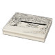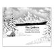 En tyst vinterscen som sträcker sig under en blek, silverfärgad himmel. Snötäckta berg sträcker sig i fjärran, med toppar mjuka av drivande moln.