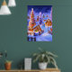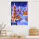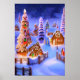 En byn för giggerbröd i snöberget, snö på tak, träd i byn, en coola unik konst i ett vinterlandskap med stjärnor i himlar. Det här är en AI-skapad konst.