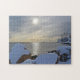 Fotografiet togs på morgonen efter en stor snöstorm 2012. Vyn tittar ut vid ljud från stranden på Indiska Cove, Guilford, Connecticut.