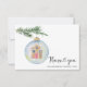 Vinter gren med leksak. Vattenfärgad babyduschinbjudan med julen gräs gren med nyårets bollar i leksak i ett brödhus. Matchande objekt är tillgängliga.