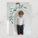 Elegantens julfotoport med två foton. Fotot på framsidan omges av ett archéat kuster med formen ram som är förskönat med vinterbär av grönt. Kortets baksida har ett annat foto och utrymme för att lägga till helgdag önskemål. Välj dina favoritfoton, lägg till ditt namn och önskemål och börja skicka beundrare till dina nära.