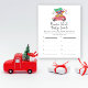 Grymt röd bil i vattenfärg och blyertspenna stil bär gåvor och Julgran. Fira den stora dagen med "Julgran-bilen". Vinterbabyduschen. Matchande objekt är tillgängliga.