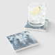 En sten underlägg med ett foto av ett par hästar som hänger ihop. En snödag och ett blått filter skapar en magisk scen.