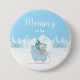 Den här söta och roliga knappen kan anpassas med ett namn eller titel, till exempel mamma, mormor, systerdotter, storesyster osv. Designen visar en bedårande björn i en blå släde omgiven av snö, berg och tallar. Texten kombinerar handskriven stil och sans serif-teckensnitt för en snygg och modern look. Vackra falska glitterblomsterarrangemang och silverkonfetti ger en festlig touch.