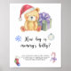 "Det är en Beary Sweet baby på väg." Fira med den här nallen, den där babyduschen party! Vaterfärgssöt nalle med julklapp, i tomhatt. På baksidan av kortet finns helgdag christmas mönster (candy cane, julgran boll leksak, julsockar). Matchande objekt är tillgängliga.