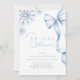 Ange tonen för ett magiskt firande med det här vinterblå Bow Inbjudningskort för möhippan. Designat med blått rosett band och mousserande snöflingor är elegantens vintertema perfekt för att hedra den blivande bruden. En chic och ett tidslöst val för en möhippa för kall-säsong.