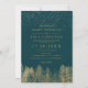 Vinterskogen i träd bröllop med guld med träd i gräs, som visar ett underland med trämark och vit fallande snö, med elegant och modern typografi på ändringsbar blått.
