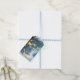 En vacker bild av en blå vinter-trädscen att lägga på någons julklapp. Vit struktur-bakgrund med blå text på baksidan.
