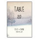 Detta Vinterblått och vitt Bordsnummer för mottagning av bröllop skapas med ett tema för Vinter Wonderland, snö, som faller i en skog. Om du vill anpassa det här Bordsnumret-kortet infogar du bara ett nummer i vår enkla mall och ersätter exempeltexten för varje kort du beställer. Numret upprepas automatiskt på baksidan.