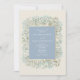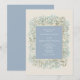 Upptäck den perfekta blandningen av elegans och rustik charm med denna boho-chica vinterbröllopsinbjudan. Med vintageinspirerade vilda blommor i dammiga blå nyanser, prydda med ömtåliga guldförgyllningar, utstrålar den en tidlös sofistikering samtidigt som den omfamnar den frisinnade skönheten i naturen. Perfekt för ett bröllop där klassisk grace möter lekfull charm.