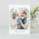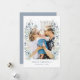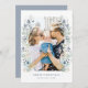 Vi presenterar vårt vackra julkort med en mjuk, dammig blå akvarellblomma ramdesign med blå julbär! Detta vackra kort är det perfekta sättet att skicka varma julhälsningar till dina nära och kära. Kortet har en anpassningsbar fotoyta, så att du kan lägga till ditt favoritfamiljefoto och göra ditt kort ännu mer personligt.