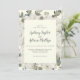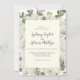 Denna vinter-blommigt på inbjudan till bröllopsbröllop om elfenben är perfekt för ett elegant bröllop. Den enkla designen har vita blommor med vintern grön och eukalyptus löv, med en modern land-känsla.
