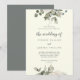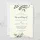 Denna vinter-blommigt på elfenben bröllop på inbjudan är perfekt för ett elegant bröllop. Den moderna designen har vita blommor med vintern grön och eukalyptus löv, med en enkel land-känsla.