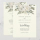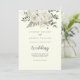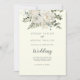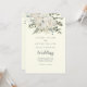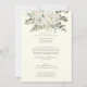 Den här vintern blommigten på inbjudan till elfenben fram och bak-bröllop är perfekt för ett elegant bröllop. Den moderna designen har vita blommor med vintern grön och eukalyptus löv, med en enkel land-känsla.