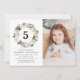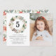 Elegant vintern blommigt födelsedagsfest inbjudan med barnåldern omgiven av en krans av elfenbensfärgade blommor, hullbär, gräs och lush grönt löv. Anpassa vintern födelsedagsfest inbjudan genom att lägga till uppgifter om födelsedagstjukans namn, foto och party. Inbjudningskortens baksida har ett blommönster som matchar vintern med vackra vattenfärgspopinsetter.