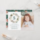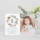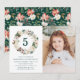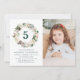 Elegant vintern blommigt födelsedagsfest inbjudan med barnåldern omgiven av en krans av elfenbensfärgade blommor, hullbär, gräs och lush grönt löv. Anpassa vintern födelsedagsfest inbjudan genom att lägga till uppgifter om födelsedagstjukans namn, foto och party. Inbjudningskortets baksida har ett blommönster som matchar vintern med vackra vattenfärgspunkter mot gröntens bakgrund.