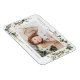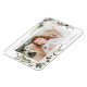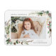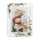 Elegant helgdag fotomagnet med ditt favoritfoto inramat av buketter av elfenbensfärgblommor, lush grönt foliage, gräs-koner och hallon mot vit bakgrund. Anpassa helgdag genom att lägga till ditt namn och en anpassningsbar hälsning.