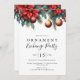 Vänner och familj i inbjudan för att fira säsongen med den här inbjudan till julfest för prydnadsbyte under vintern Blommigt. Med mjuk snörött poinsettias, holly, gräs grenar och festliga prydnadsföremål fångar designen helgdagarnas värme och glädje. En klassisk röd palett, grönt och vit palett med känsliga vinterdetaljer gör det till perfekt att vara värd för en festlig prydnadsväxel i party.