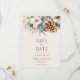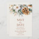 Detta är ett elegant vinterblommor tallkotte bröllop Spara datum!