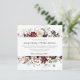 Elegant och rustik på samma gång, dessa vinterblommor är en blandning av akvarellblommor i burgundy, mauve, persika och mörk skoggrön. Grönskan består av tallgrenar, järnek och åkergrönsaker. Texten och baksidan av kortet är mörk skoggrön. Perfekt för ett vinter- eller julinspirerat bröllop. Anpassa med din egen information. Om du vill ha denna design på en matchande produkt, vänligen kontakta mig via min butik.