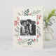 Det här anpassadet med 1-fotokort har elegant handmålade vattenfärgsbotaniska helgdag som ram fotot på ett vackert sätt. Kommer med ett matchande mönster på baksidan och rum för skriva av ett personlig-meddelande. Vill du anpassa ännu mer? Klicka på "Redigera med Design Verktyg". Den här designen ingår i en samling. Originalteckning av designern Nicole Barreto. Köp helgdagskort och mycket mer på www.zazzle.com/store/nbpaperco