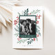 Det här anpassadet med 1-fotokort har elegant handmålade vattenfärgsbotaniska helgdag som ram fotot på ett vackert sätt. Kommer med ett matchande mönster på baksidan och rum för skriva av ett personlig-meddelande. Vill du anpassa ännu mer? Klicka på "Redigera med Design Verktyg". Den här designen ingår i en samling. Originalteckning av designern Nicole Barreto. Köp helgdagskort och mycket mer på www.zazzle.com/store/nbpaperco