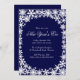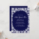 Ljusande snöflingor på en mörkblå bakgrund pryder denna inbjudan till nyårsfest. Om ytterligare föremål behövs i denna samling, vänligen kontakta oss på prettyfancyinvites@gmail.com med din förfrågan.