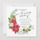 "Vinterbröllopsinbjudan till Blommigt med Giftermål-krescerande utandning". Kvadratisk formatinbjudan. Enkelt. Modern. Elegant. Idealisk för ett vinterbröllop skapades jultomten säsong av konstnären Audrey Jeanne Roberts. Knivande: Den moderna stil-andedräkten dekorerad med röda poinsettimiblommor, hollad med bär, mistletoblommor, blommor av vit vild ro med gräs-koner och sprit. Copyright.