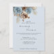 Vinterbröllopsinbjudan med vackra bruna, vita och blå pinekonar, accenter från gräs grenar och guld. Anpassa text och teckensnitt efter dina önskemål. #generativeccontent