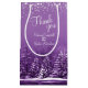 Vinterbröllopet i gräs träd vid sjön av lila vita konst tack för att du föredrar presentsäckar. Vinterbröllop mörk lila träd, lila himmel och vitt snö täckte gräs träd av sjö med gouache och vattenfärgssäckar. Anpassa med ditt eget bröllop namn. Idealisk för en jul-, lila- eller vinterbröllop. © Originalmålning och -design av Sarah Trett för www.mylittleedenweddings.com