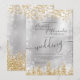 Det är dags att fira ert vinterunderlands bröllop-tema med den lyxmässiga guld glitter-sparklerna och guld-gräs-skogen i träd på en snöflingor faux glitter elegant-metallisk bakgrund, med en modern grått-typsnitt.