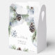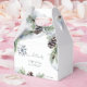 Snö i kärlek Vinterbröllopsförmånslåda för vattenfärgssnowy tallar-mall, Snowy tallar med gräs-koner snöflake muterad Skandinavian vinterfärg modern avslappnad font personlig favourbox