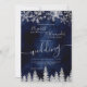 Det är dags att fira ert vinterunderlands bröllop-tema med den lyxmässiga silver glitter-gnistor och silver-träd-skogen i gräs på en marin marin marin marinblå bakgrund i snöflingorna, med en modern glitter-typsnittstypografi.