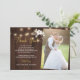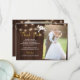 Vinterbröllop i elegant chic tack vare snyggten med ett kort på bruna lingträ med en liten vit blomma med löv, stringor eller tvinklad ljus och ett chic faux guld calligraphy-skript. +++++++++++++ Enkel att anpassa med information och två foton på framsidan och baksidan! ++++++++++ Lämpligt för elegant land eller bröllop.
