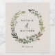Utformning av par namn bröllopsfest för vitling. Med vackra vattenfärgade blad, vita blommigtar och manuskript. Denna moderna utformning kommer säkert att sätta stil för ert kommande party.