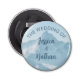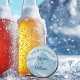 Den vackra bergsöppnaren bröllop flaska har ett starkt foto av berg med tak över snö på vintern. Lägg till namnen i blått skript över backe. Fotografi av perfekten för ett kall väder bröllop.