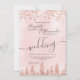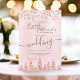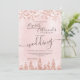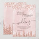 Det är dags att fira ert vintertema bröllop med den lyxmässiga ro guld snöflingor-gnistor och glitter-skogen i ro glitter guld i gräs på en träd faux elegant metallisk bakgrund, med ett modernt rosa typsnitt.