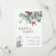 Spara datumkortet med söt vintern bladgrafik i rött och grönt och ett modernt teckensnitt. De här snyggtarna är det perfekt sättet att låta familj och vänner veta ditt datum i bröllop. Pair med vad som helst i NOELLE-samlingen för ett sammanhängande utseende.