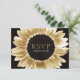 Dessa djärva men eleganta 5" x 3,5" bröllops-svarskort har en stor solbelyst guldsolros på svart bakgrund. Baksidan har platshållare med linjer för gästen att fylla i sitt namn och välja sitt val för att delta.