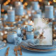 Vinterbröllop Tallkottar Modern Blå Brun Vit Bordsnummer