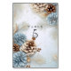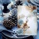 Vinterbröllop bordskort med vackra bruna, vita och blå tallkottar, tallgrenar och guldbelägg. Anpassa text och teckensnitt efter eget tycke. #generativt innehåll