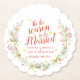 personligen papper underlägg av för vinterkrans i bröllop. Ett underbart personligt tillägg till din jul- eller vinterbröllopsdag bord eller efter bröllop eller bröllop efter party. Anpassa med din brud och triummer namn och bröllop. Perfekt för en naturlig växt- eller vintergrej, bär eller gräs-kon som temat bröllop. Utandningsfärger för vattenfärger har gräs, bär, holly, mistletoe, grevillea och guldfärgade gulter stjärnor, originalkonst och design av Sarah Trett. www.sarahtrett.com för www.mylittleeden.com