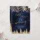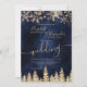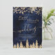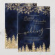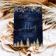 Det är dags att fira ert vintertema bröllop med denna lyxa gult guld snöflingor-gnistor och glitter-skog från ro glitter guld i gräs på en träd marin blå vattenfärgsbakgrund, med en modern elegant-typsnitt.