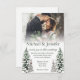 Vinterbröllopsfoto med modernt grönt-skript inbjudningar
