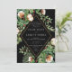 Elegant vinterbröllopsinbjudan med modern guld diamant ram omgiven av järnek och tall med vita bomullsblommor. Röda bär ger en stänk av festlig färg. Det finns en vinterbotanisk kvist på baksidan av inbjudan. Den svarta bakgrunden ger den en mycket elegant och modern känsla. Denna bröllopsinbjudan är en del av samlingen Holly and Pine White Floral. Om du behöver hjälp med att hitta kompletterande föremål, är du välkommen att skicka ett meddelande till mig. Jag heter Nelda och jag hjälper gärna till.